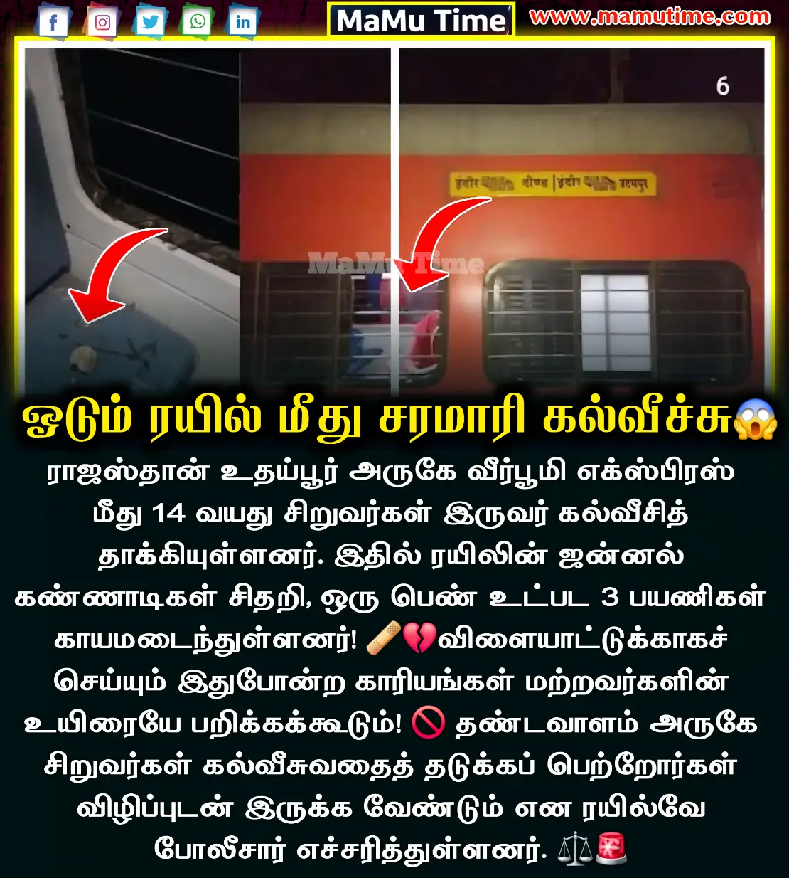 ரயில்வே நிர்வாகம் இதுகுறித்து ஒரு முக்கியமான எச்சரிக்கையை விடுத்துள்ளது. “ரயில் பாதையோரங்களில் வசிக்கும் மக்கள், தங்கள் குழந்தைகளைக் கண்காணிப்பில் வைத்திருக்க வேண்டும். தண்டவாளம் அருகே விளையாடுவதோ அல்லது ரயில்கள் மீது கற்களை வீசுவதோ தண்டனைக்குரிய குற்றம்” என்று அவர்கள் வலியுறுத்தியுள்ளனர்.